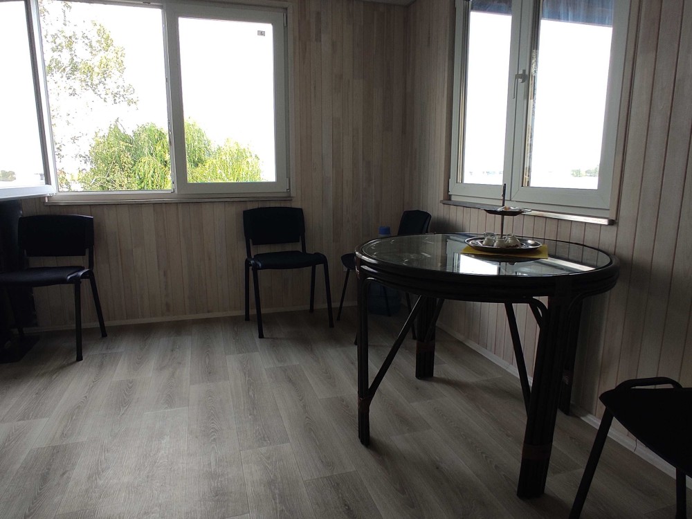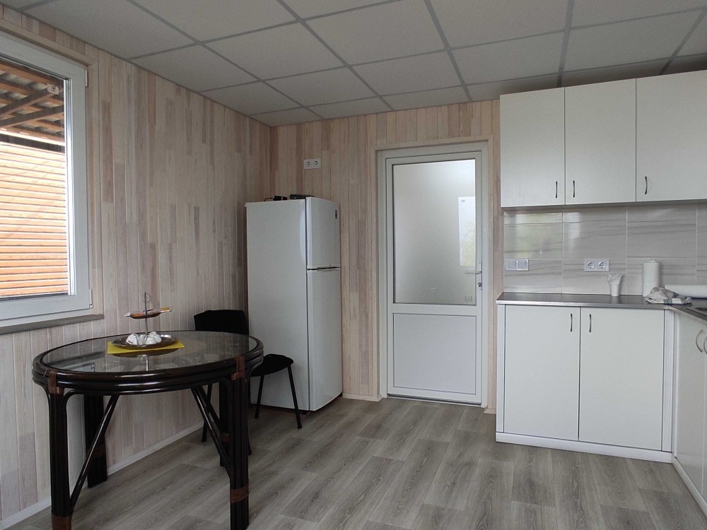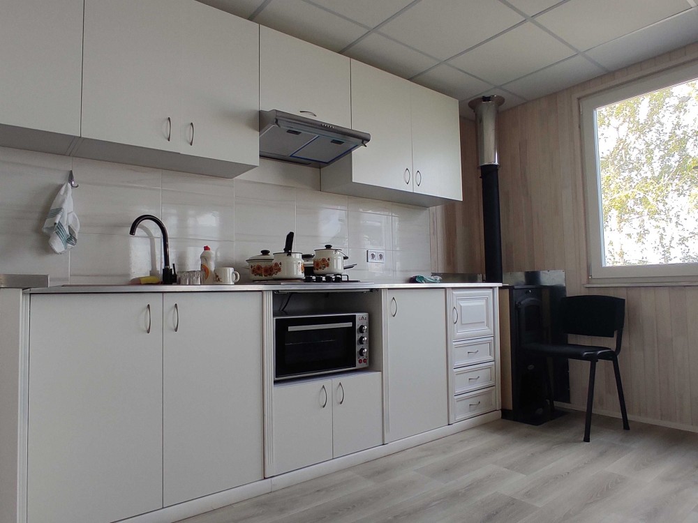 Просторная кухня с мебелью, бытовой техникой, сан узел и душевая с бойлером и красивым видом на Днепр. Есть дополнительно летний душ.
