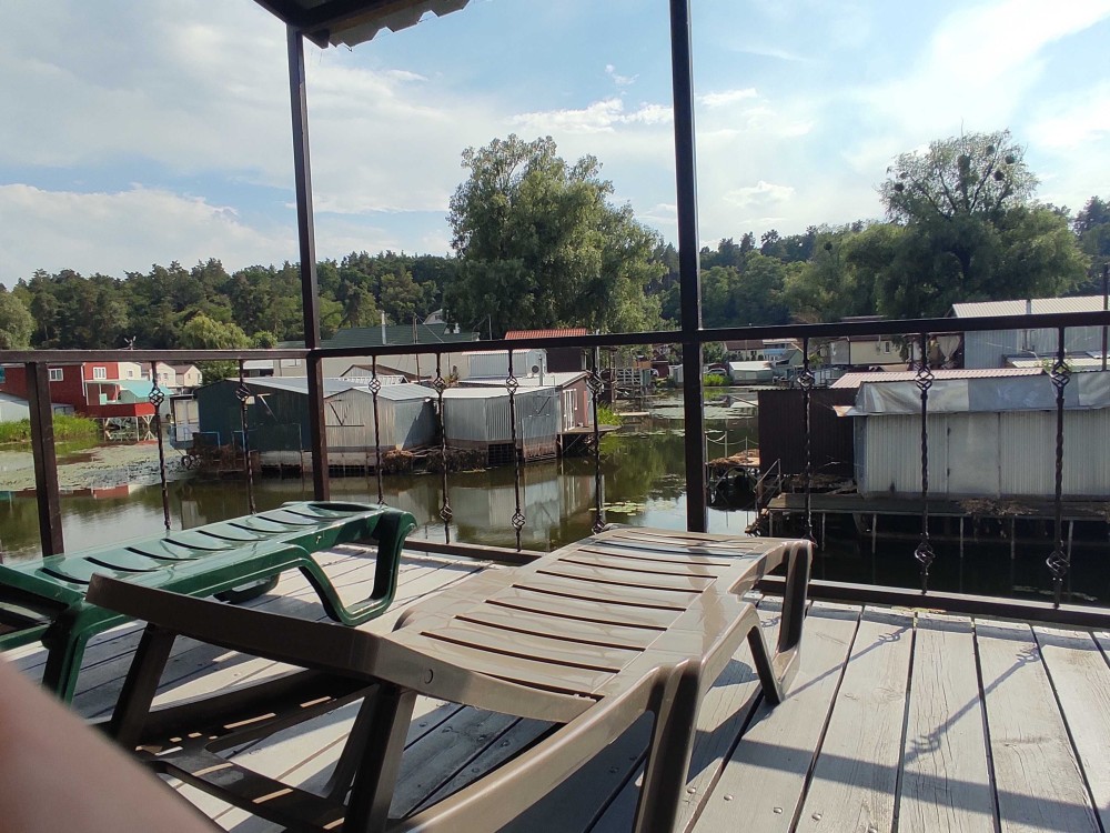 Оборудовано место под лодочный гараж, уютная терраса для отдыха с видом на Днепр и отдельная зона с шезлонгами.