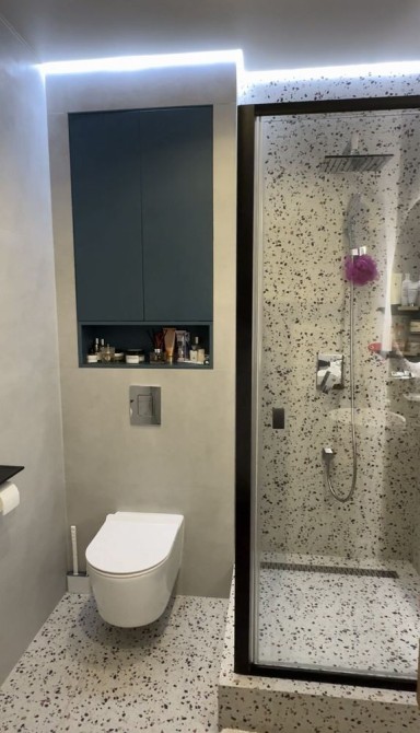 Квартира студия, и отдельно спальня. Машинка стиральная и бойлер зашиты шкафом!