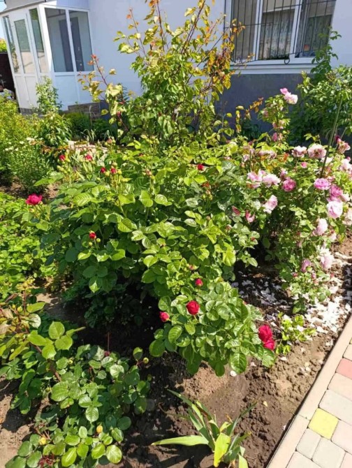 Земельна ділянка 4 сотки, висаджені багатолітні рослини.