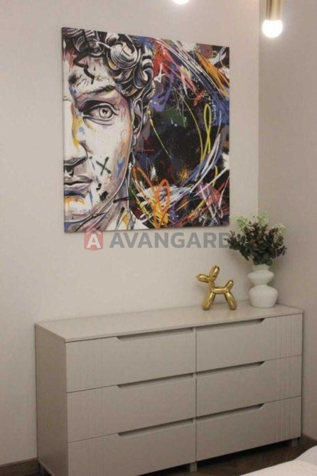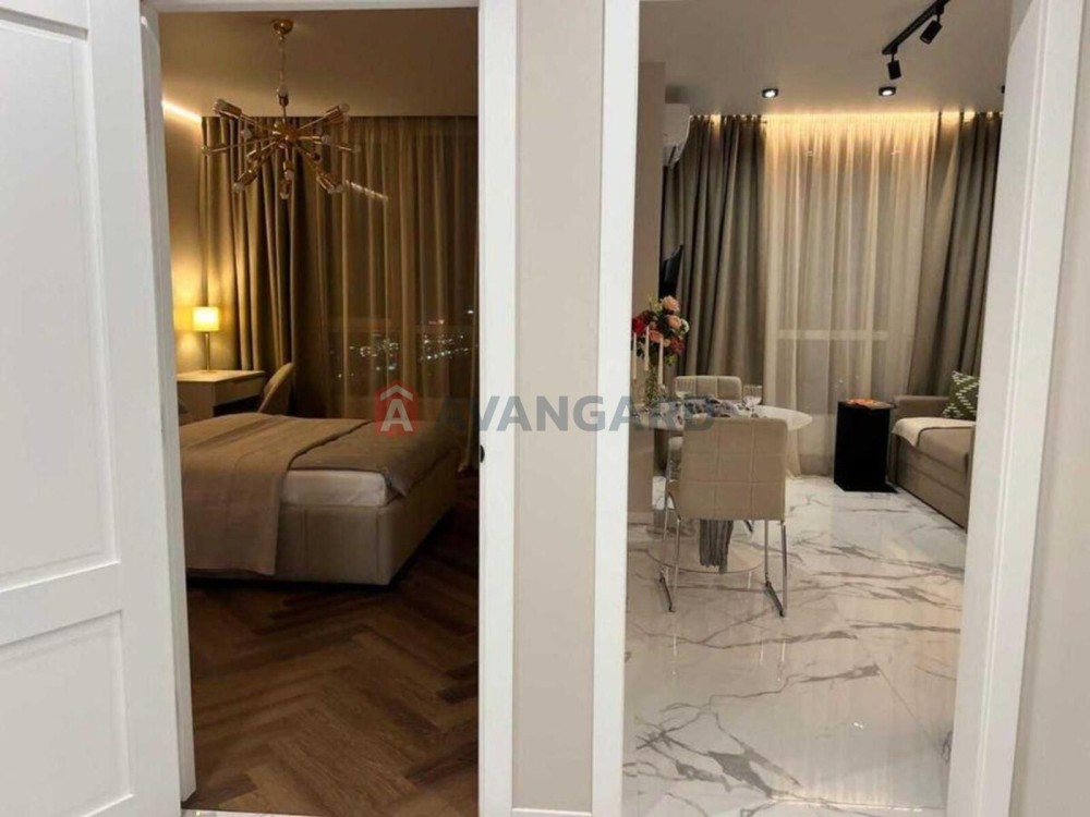 Квартира повністю укомплектована меблями та декором — спальня, вітальня, кухня, гардеробна.