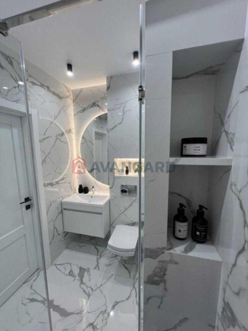 Продається абсолютно нова 1-кімнатна квартира з бездоганним дизайнерським ремонтом 2024 року. Інтер’єр виконаний у світлих тонах із поєднанням мармурових акцентів, теплих LED-підсвіток та мінімалістичного декору — стиль, який завжди виглядає дорого та сучасно.