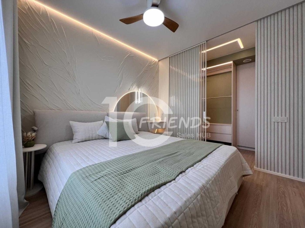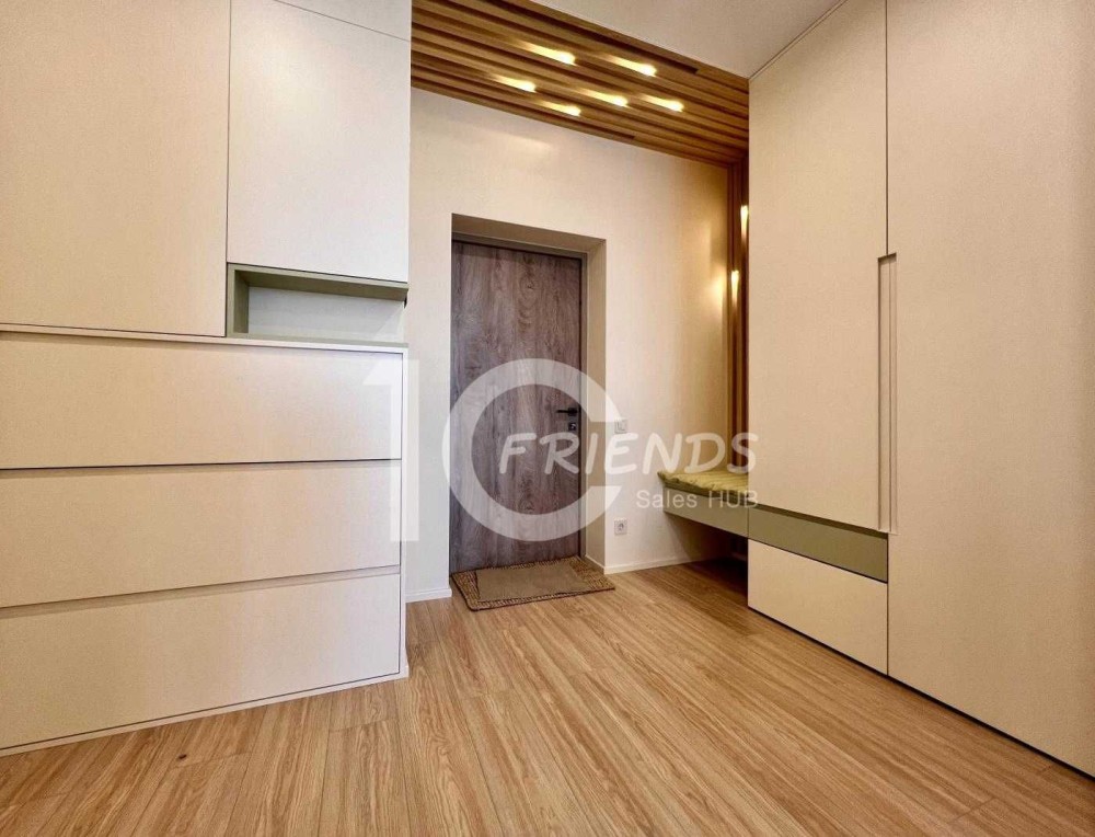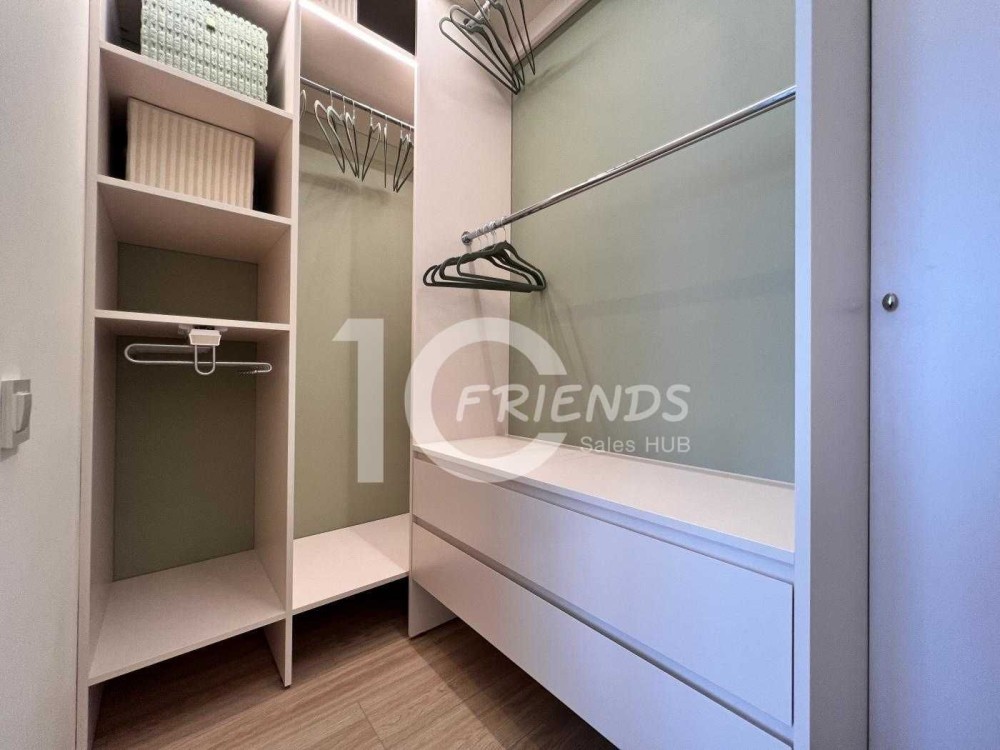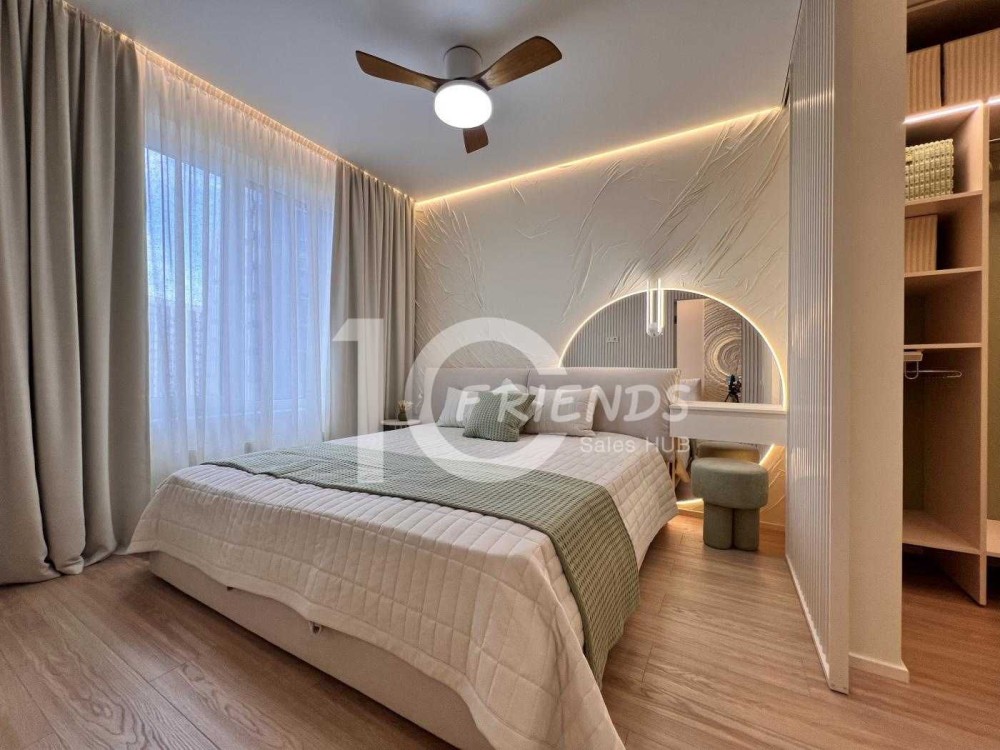- Окрема спальня з гардеробною: затишна атмосфера та зручне зберігання речей.