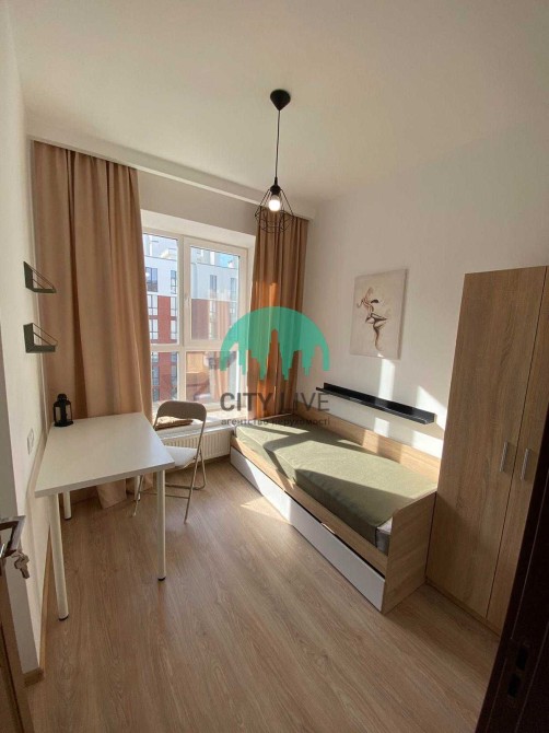 У спальні встановлено зручне двоспальне ліжко, кондиціонер, а друга кімната облаштована односпальним ліжком. Для тих, хто працює або навчається з дому, передбачено два повноцінні робочі столи.