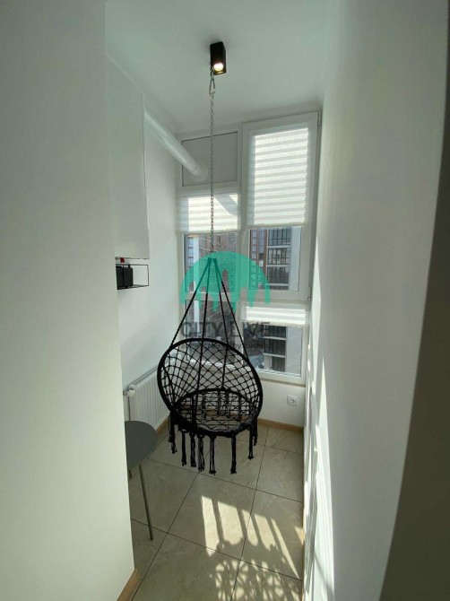Для відпочинку та релаксу облаштована затишна лоджія з підвісною гойдалкою — ідеальне місце для ранкової кави або вечірнього відпочинку.