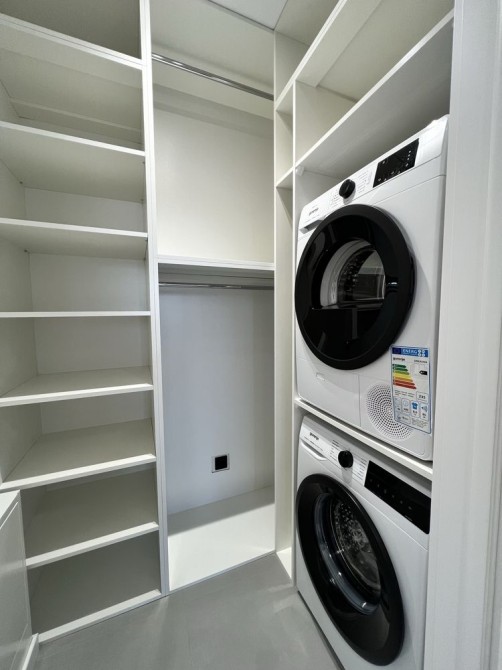 Є гардероб, де також розмістили пральну та сушильну машинку.