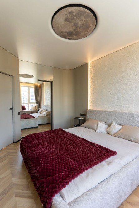 У квартирі виконаний якісний дизайнерський ремонт у світлих теплих тонах, що створює атмосферу затишку та простору.