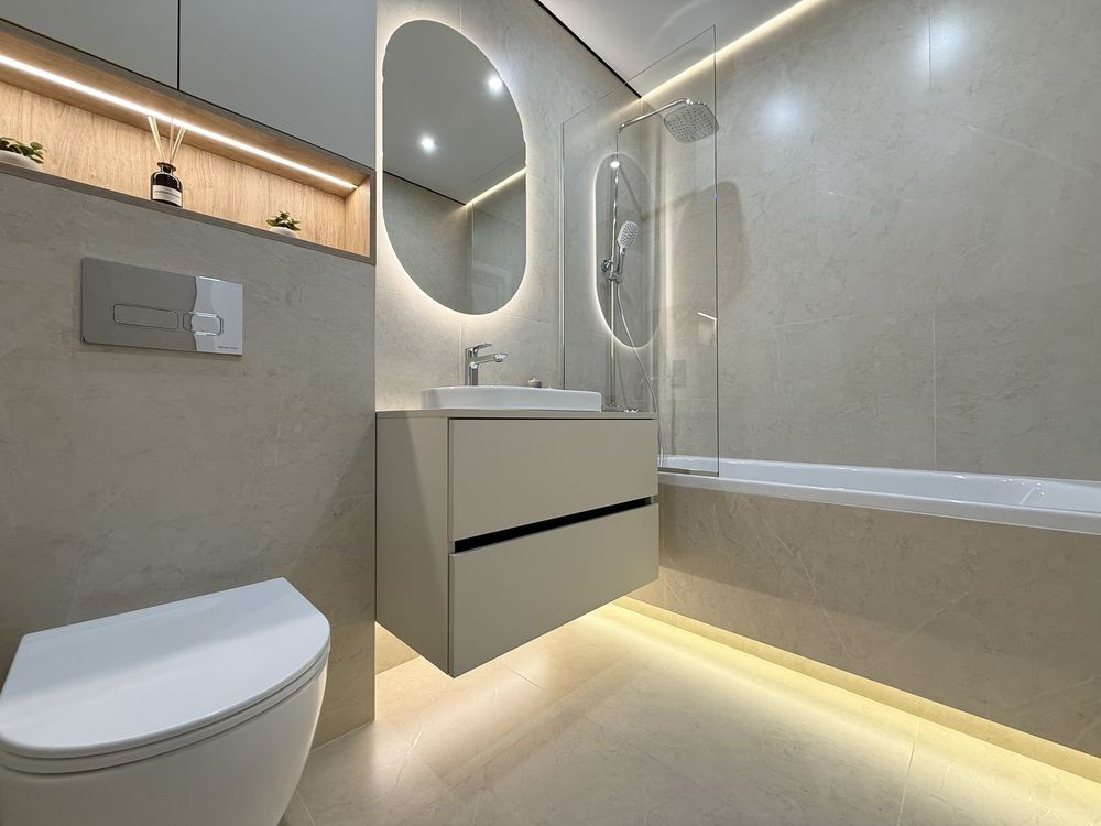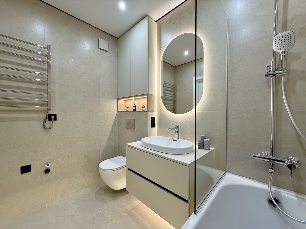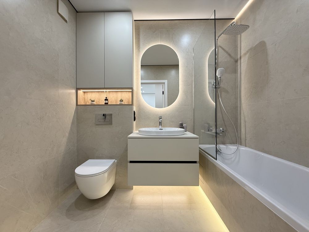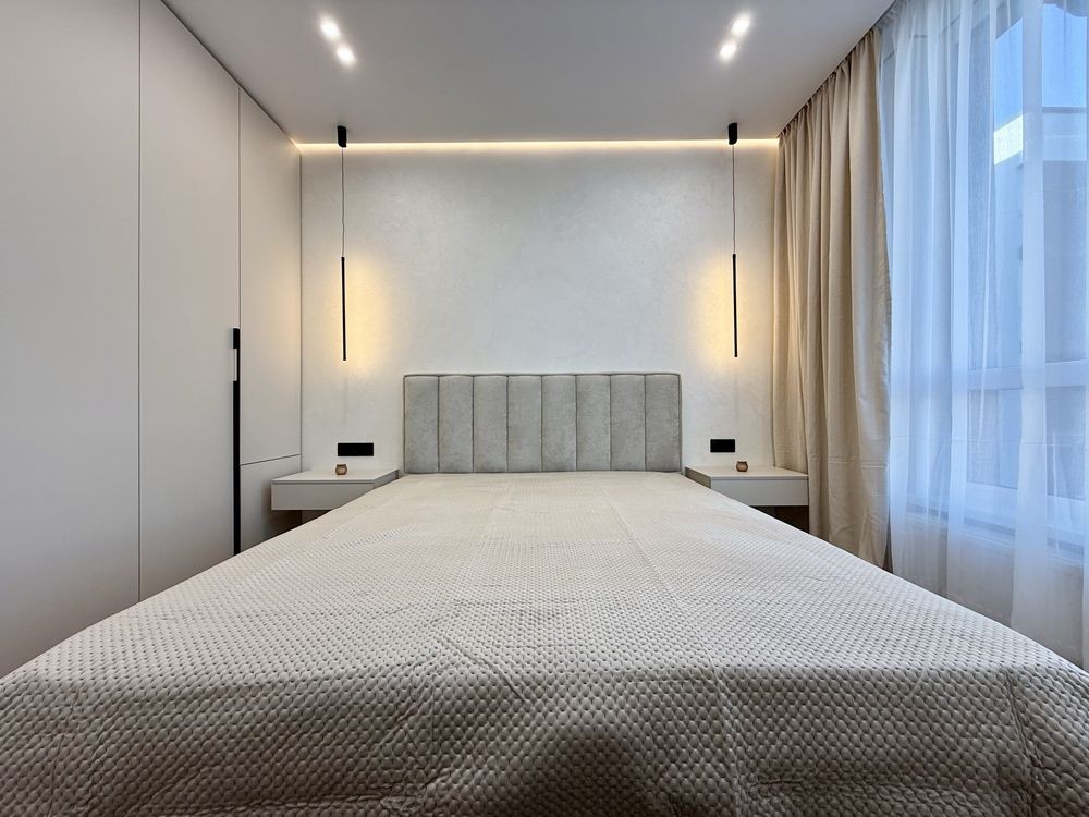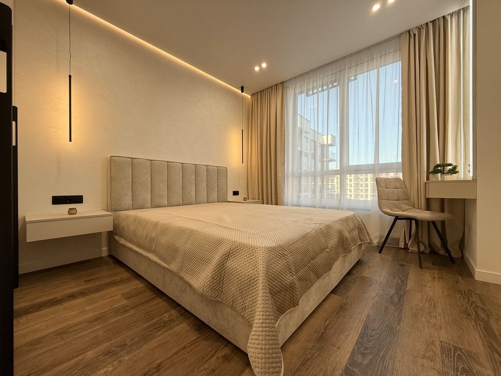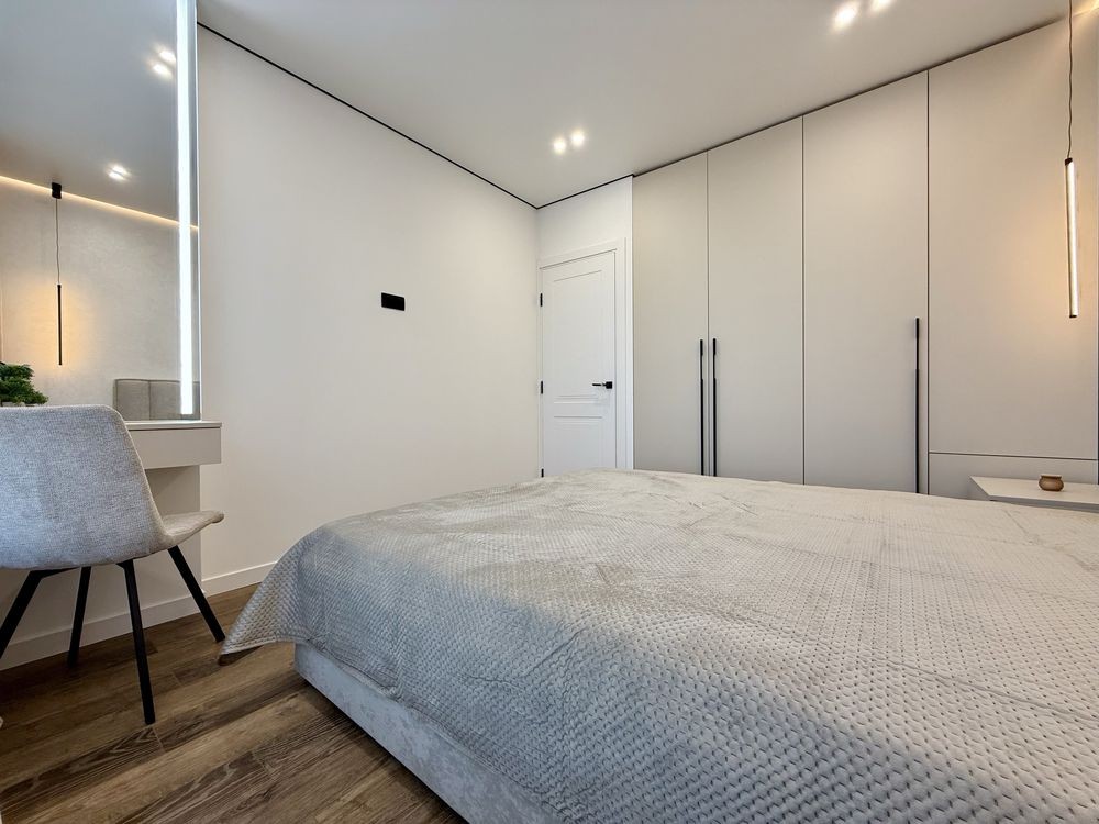 В квартирі виконаний якісний та стильний ремонт з використанням виключно дорогих та якісних матеріалів. Є вся необхідна техніка та меблі. Гарне планування з просторою кухнею, окремою спальнею, гардеробом та санвузлом з ванною.