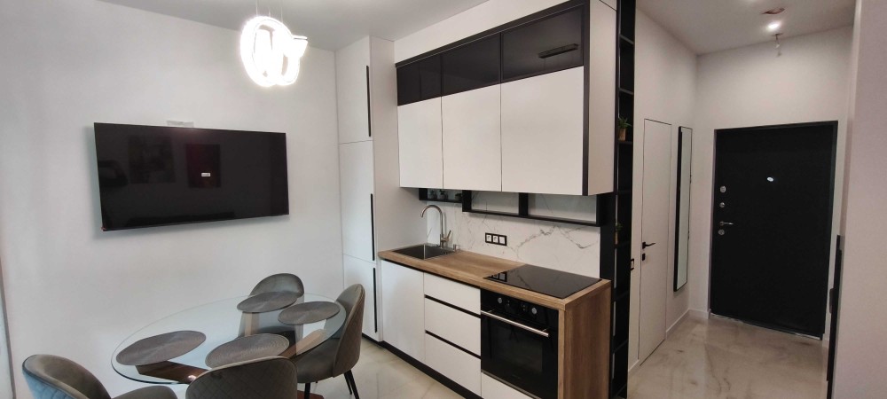 Комплектация «Full»: Продается со всей мебелью и техникой (встроенный холодильник, индукция, духовка, бойлер, вытяжка, стиральная машина, 2 инверторных кондиционера, 2 больших ТВ). Сделана шумоизоляция.