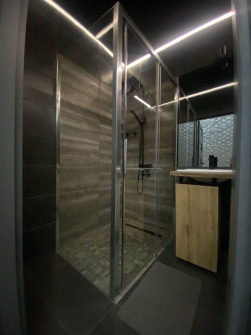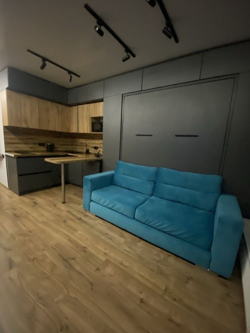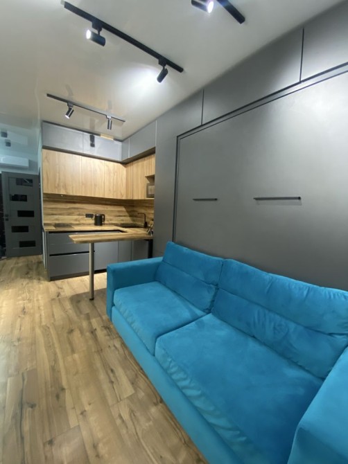 Квартира после современного ремонта, оформлена в стильном минималистичном дизайне. Пространство продумано до мелочей: компактная кухня, удобная зона отдыха и комфортное спальное место создают уютную атмосферу.
