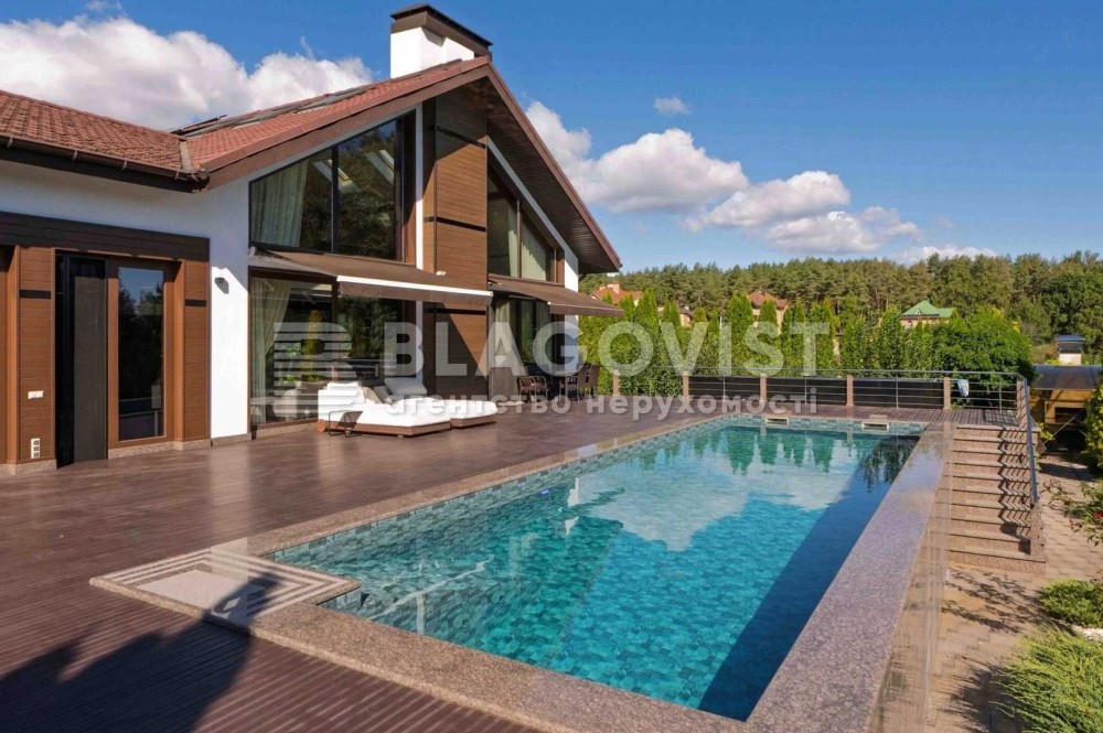 БЕЗ%, будинок 190м2, Віта Поштова, СТ «Хуторець», навколо ліс, 9 км Київ та м.Теремки, Одеська траса Загальна площа будинку - 190м2. Площа земельної ділянки 10.38 соток. Будинок знаходиться в затишному та мальовничому місці, між Вітою Поштовою та Тарасівкою, оточений дорослим хвойним та листвяним лісом, з власним виходом на озерце. Побудований на пагорбі, дає можливість насолоджуватись неперевершеним видом на ліс та озеро, крізь великі панорамні вікна будинку 24/7. Раціональне та комфортне планування, великі, світлі та просторі кімнати з панорамними вікнами. 1й поверх: столова – вітальня, кухня, гердероб, санвузол, гараж, котельня; 2й поверх: три окремі спальні кімнати, санвузол. Об’єкт для поціновувачів заміської тиші та ранкових піщих прогулянок!