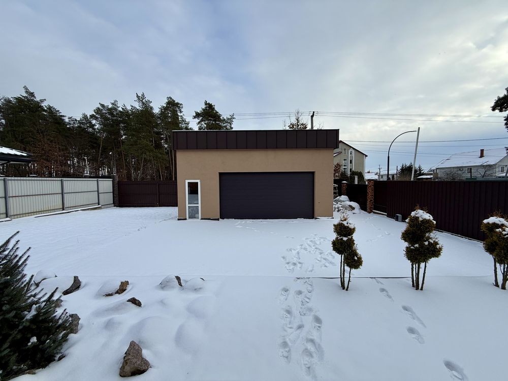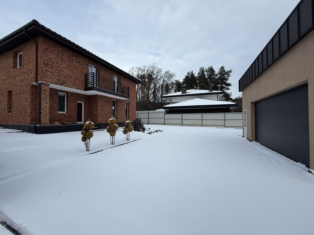 6 окремих кімнат, простора кухня-вітальня з виходом на терасу, балкон, 2 санвузли, 2 гардеробні, котельня, гараж на 2 авто, автоматичні ворота, газон з автополивом.
