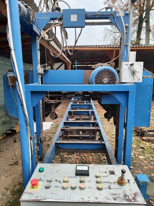 В продажі стрічкова пилорама Астра ЄС, хороший робочий стан, обладнана електромеханічним підйомом пильного механізму та автоматичним електромеханічним рухом пильного вузла встановлено електромеханічний ланцюговий кантувач,швидкість регулюється за допомогою джойстика,мотор 11 кВт, довжина загальна 8,5м