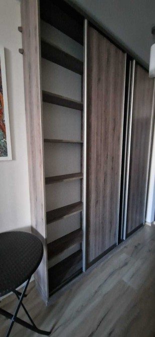 23 м.кв. на 7 пов.16 поверхового будинку. в Шевченківському районі Києва. За адресою вул. Магістральна, 33. Новий будинок комфорт класу. У квартирі зроблений якісний євроремонт. У квартирі встановлена якісна побутова техніка, холодильник, пральна машина, телевізор. Є двоспальний диван. Усі меблі та побутова техніка високої якості у відмінному стані. Простора господарська шафа на лоджії.