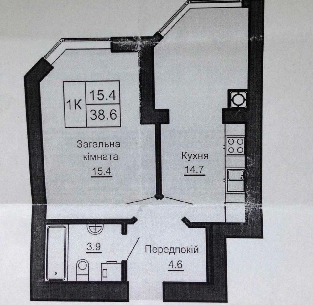 Загальна площа 38,6 м.