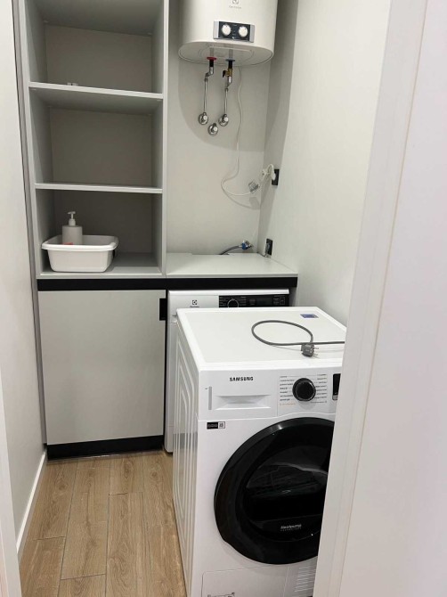 Дизайнерський ремонт. На підлозі якісний паркет. Для приємного побуту повнорозмірна посудомийка, сушильна і пральна машини, бойлер, кондиціонер, 2 телевізори. Комфортні спальні місця і місця для відпочинку.