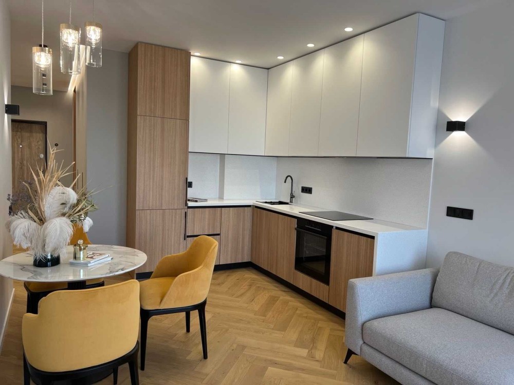 Красива і стильна 1к квартира: вітальня, кухня-студіо, окрема кімната, лоджія, кладовка, сумісний санвузол.