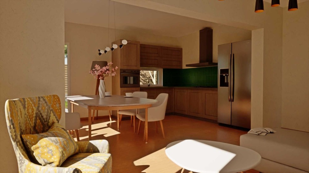 • велика кухня-вітальня 34 м² з виходом на терасу