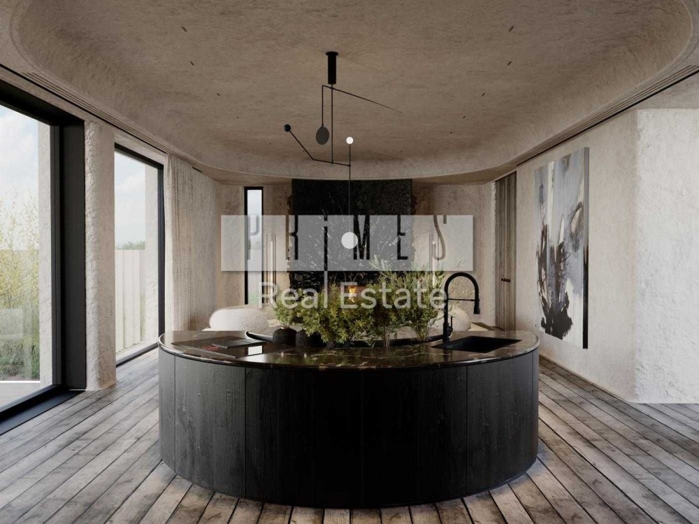 - Відкрита кухня та гостина з панорамними окнами та виходом на терасу