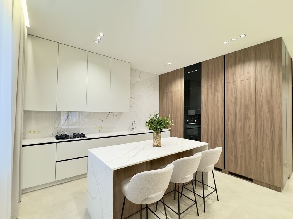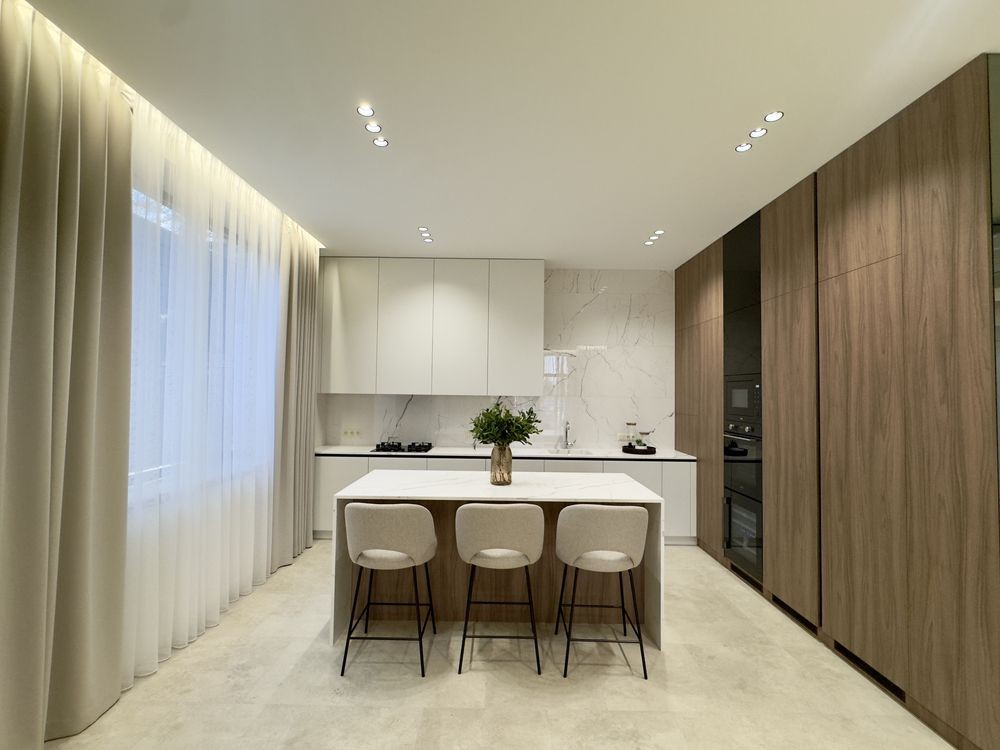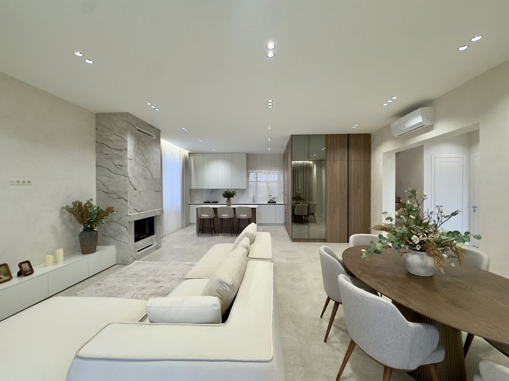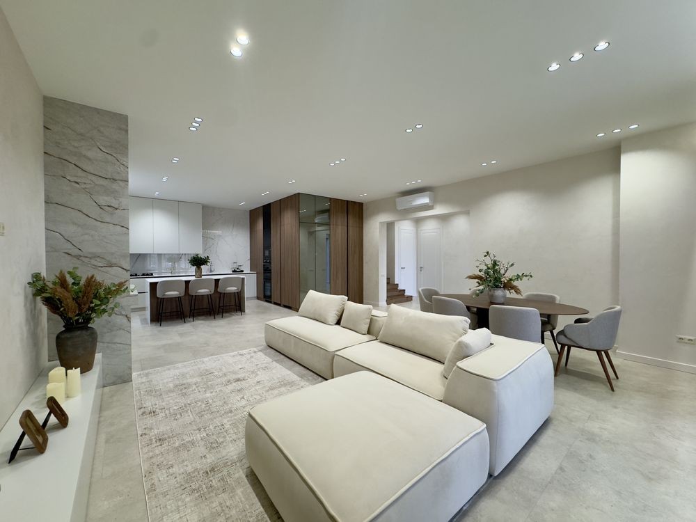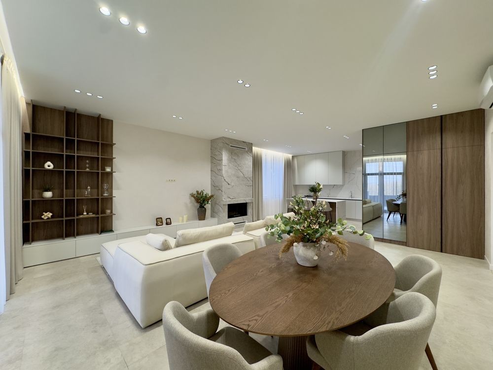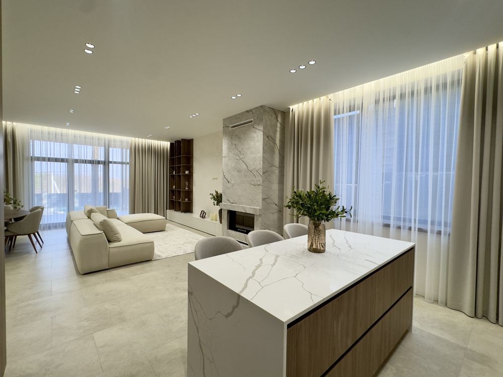 4 кімнати, зокрема майстер-спальня з власним санвузлом, гардеробною та виходом на терасу; 3 санвузли для комфорту всієї родини; простора кухня-вітальня з виходом на терасу – ідеальне місце для сімейних вечорів та зустрічей із друзями; технічне приміщення для зберігання побутових речей