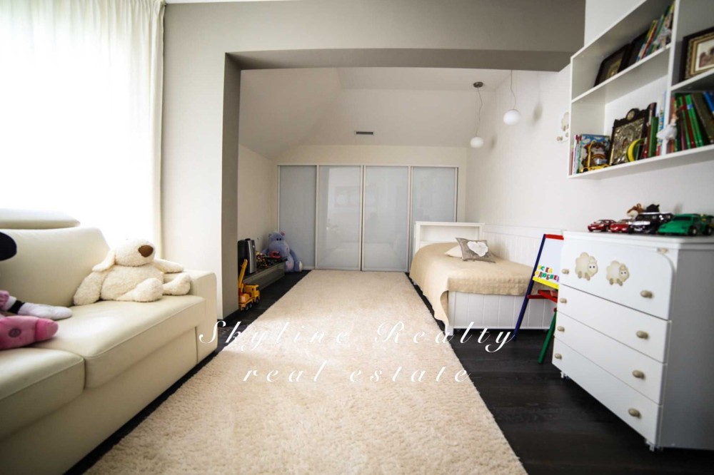 Сучасний будинок виконаний за ексклюзивним дизайнерським проектом, який знаходиться в безпосередній близькості від Києва (15 хвилин їзди), але водночас тихому та спокійному місці з особливим мікрокліматом. Будинок з якісним дизайнерським ремонтом, мебльований, сигналізація, ландшафтний дизайн. Також має досконале технічне оснащення та продумане функціональне планування внутрішніх приміщень (домашній кінотеатр, спортзал). Канальна система кондиціювання (опалення). На території знаходиться основний будинок та будинок зі SPA зоною. На ділянці 15 соток ландшафтний дизайн, декоративний багаторівневий сад (дерев, чагарники та квіти). Басейн, російська лазня. Стильна та комфортна