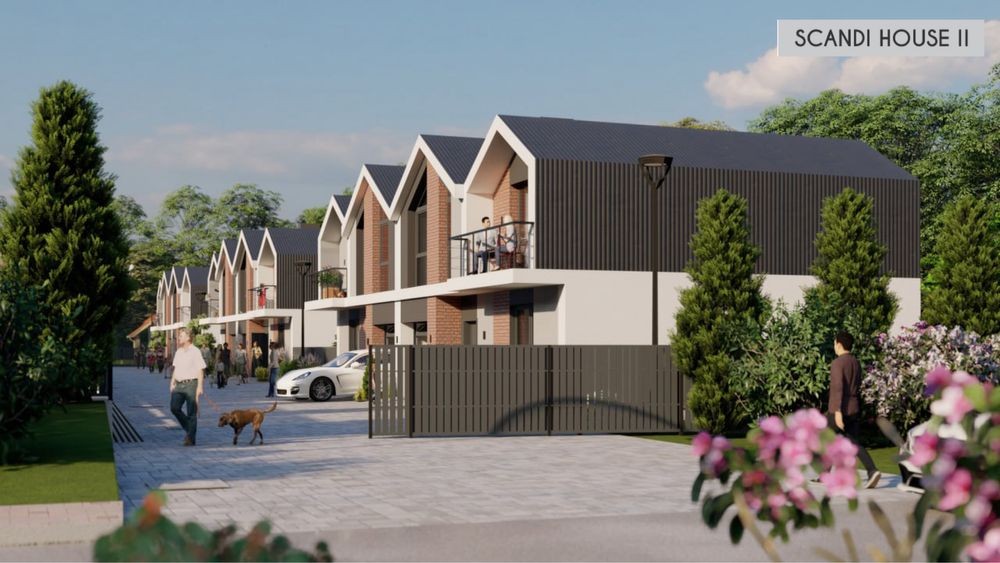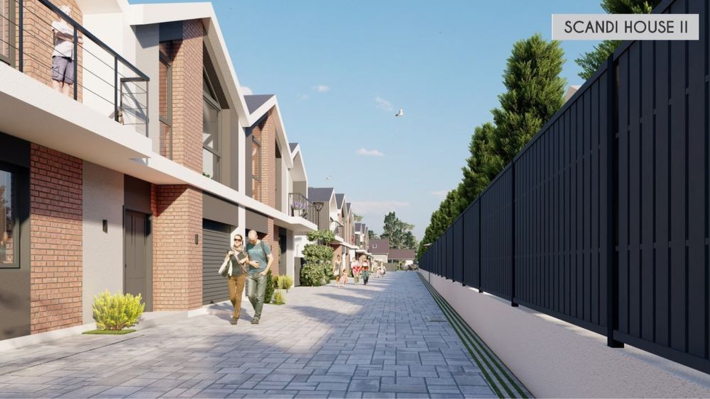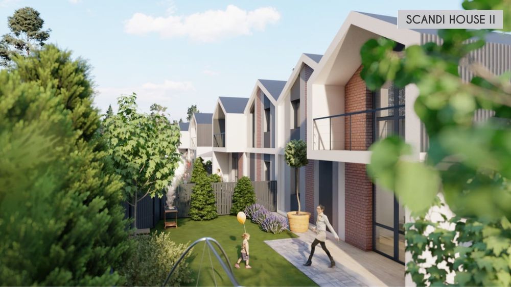 Сучасний дуплекс із закритою територію та великою земельною ділянкою.