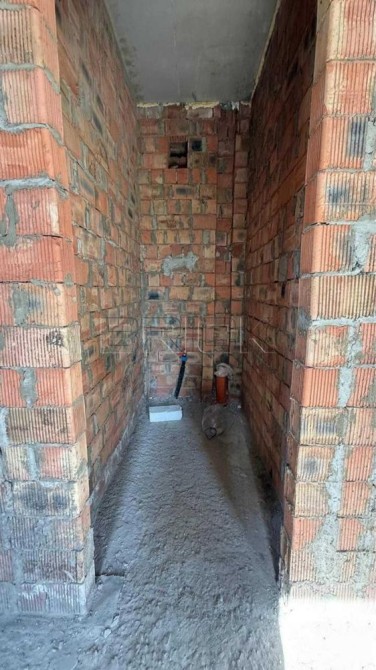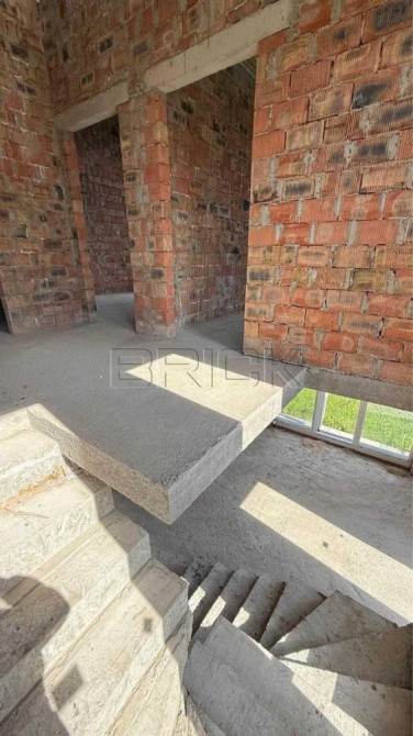 Будинок зведено з цегли (товщина стін – 250 мм), що забезпечує надійність та довговічність конструкції. Для додаткової енергоефективності виконано утеплення: стіни – 150 мм пінопласт, стеля – 250 мм мінеральна вата. Покрівля – з профнастилу, що гарантує захист від погодних умов.