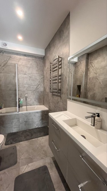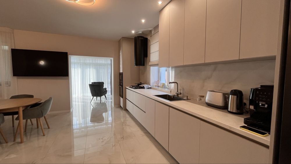 Встановлені меблі, кухня з усією технікою: холодильник, варильна поверхня, духова шафа, посудомийна машина, мікрохвильовка. Облаштовані санвузли.
