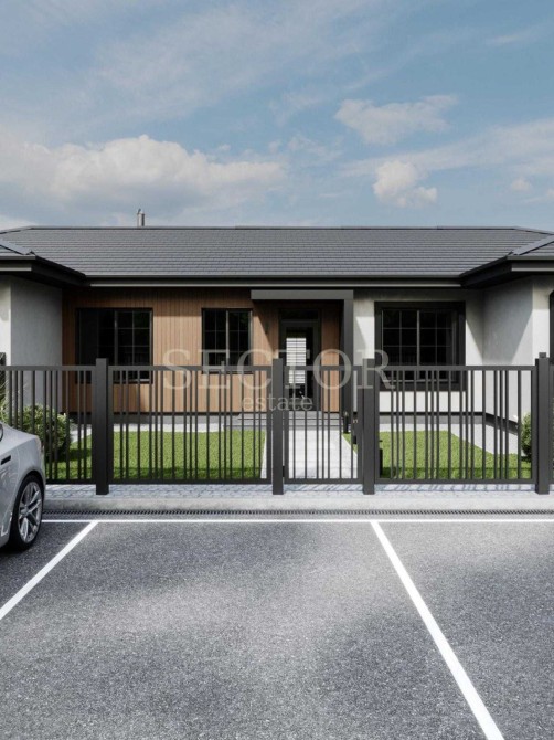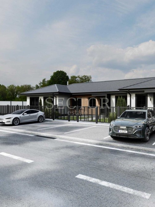 Нетиповий для ринку формат — одноповерховий таунхаус (триплекс) на 3 сім’ї.