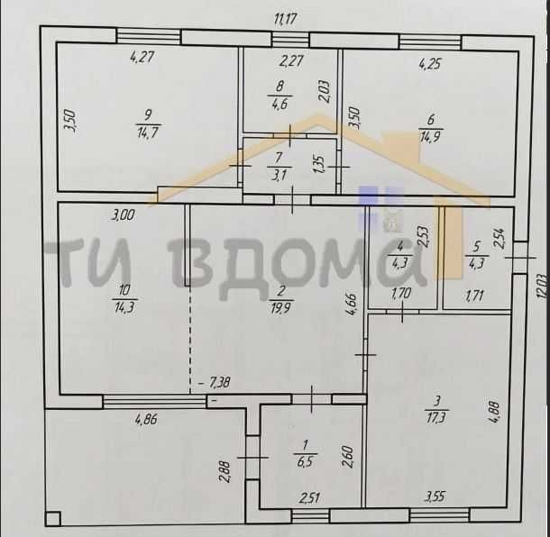 Планування: простора кухня-вітальня, три великі спальні кімнати, два санвузли, гардероб, котельня