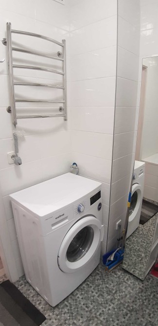 Вся современная бытовая техника: Бойлер, посудомоечная машина, кондиционер, варочная поверхность, вытяжка, стиральная машина автомат, холодильник и TV.