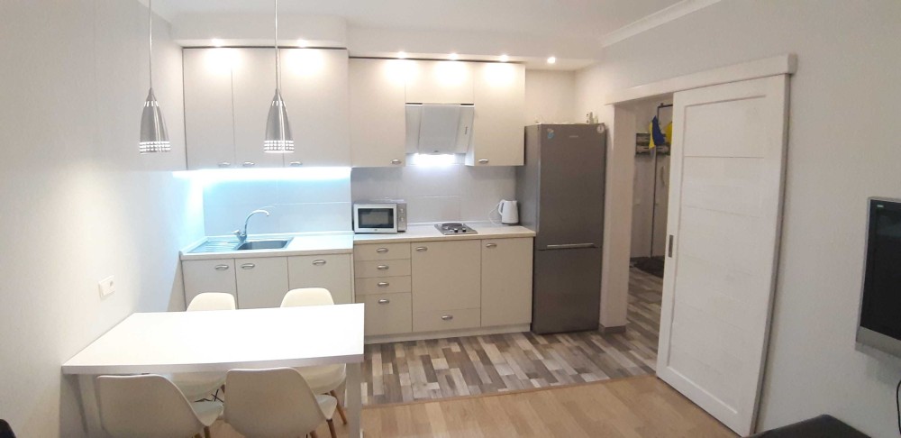 Большая кухня студио 19м2 и отдельно спальня 19м2.