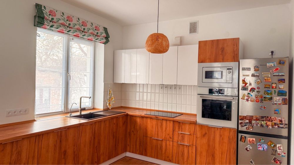 Котедж (спарений) з ремонтом, меблями та побутовою технікою (4кондиціонери, котел газовий та бак для гарячої води, вмонтована духова шафа та мікрохвильовка Bosch на гарантії, варильна поверхня електро (при бажанні можна встановити газову), посудомийка 60см, холодильник, пральна та сушильні машинки Siemens (на гарантії)