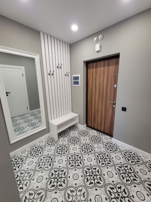 Абсолютно новый,дорогой и качественный дизайнерский ремонт. Теплые полы nexans на кухне и в ванне, большая гардеробная, индукционная плита, кровать из ольхи+ раскладная софа на кухне , деревянные крашеные двери, инверторный кондиционер,качественная мебель..В доме круглосуточная охрана и видеонаблюдение. 7 минут ходьбы к метро.Окна во двор