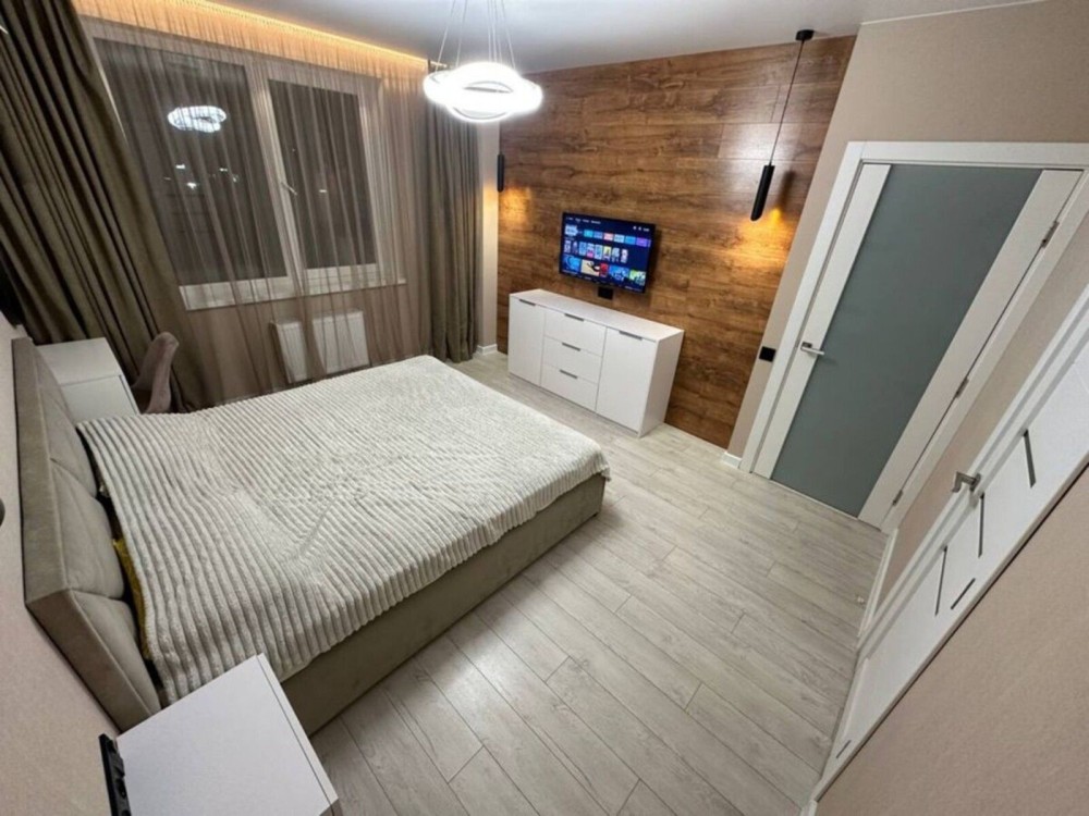Сдаётся однокомнатная квартира площадью 44 м² с просторной террасой 40 м². Формат — кухня-студия и отдельная спальня, предусмотрена гардеробная. Ремонт выполнен в авторском проекте, квартира полностью укомплектована качественной мебелью и техникой, включая посудомоечную машину. Пространство продумано для комфортного проживания, большие окна обеспечивают хорошее естественное освещение. Квартира расположена на 1 жилом этаже, фактически на уровне второго, что добавляет приватности и удобства.