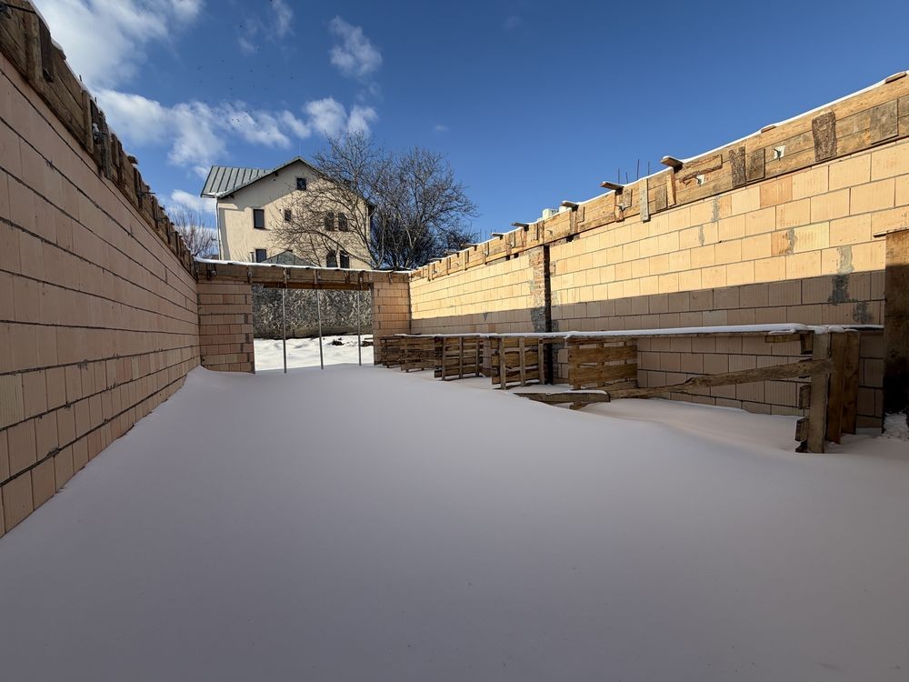 Активно триває будівництво, здача будиночків 1 квартал 2026 року. Фундамент армований залізобетонний. Стіни керамоблок, товщина 380 мм, утеплені мінватою 100 мм. Міжповерхове перекриття монолітне. Покрівля металева з утепленням. Вікна металопластикові, вхідні двері металеві, броньовані.