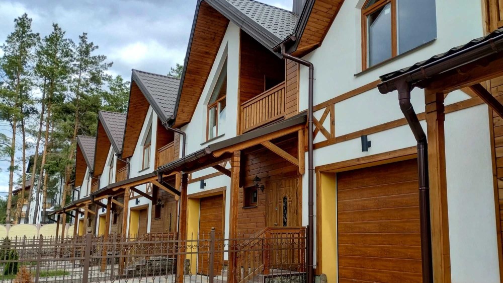 Таунхауси в затишному передмісті — всього 15 хвилин на авто до Києва (або 20 хв громадським транспортом). Будинки розташовані на території сучасних житлових комплексів Desna Residence та «Альпійське Містечко», село Зазим’я, Броварський район. Поруч сосновий ліс, навкруги тиша та свіже повітря.