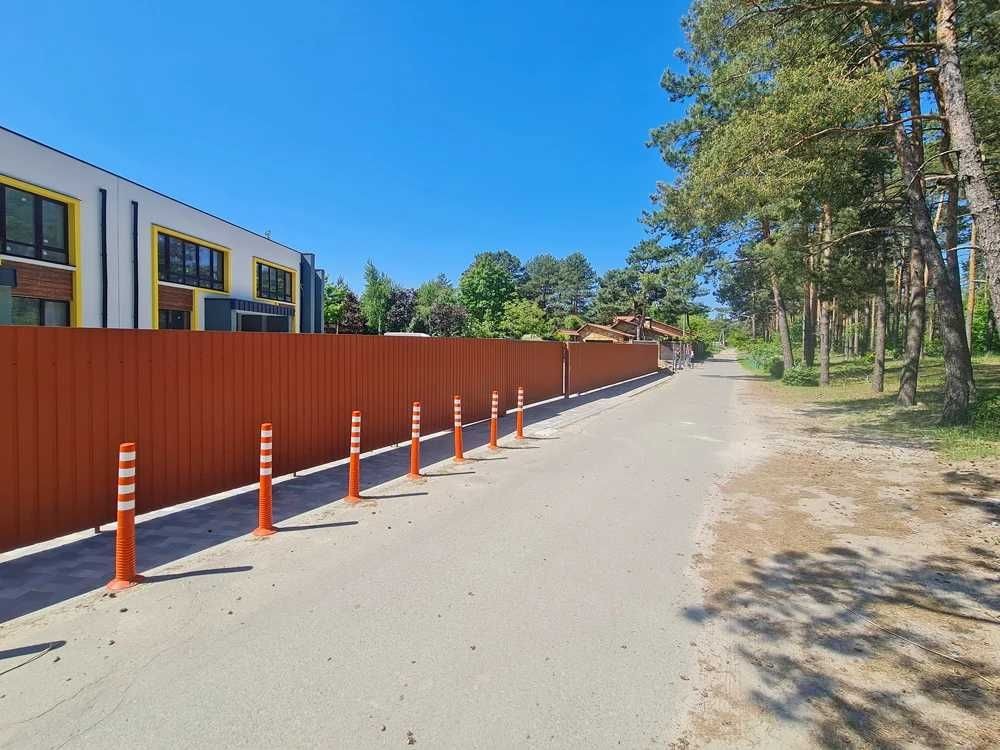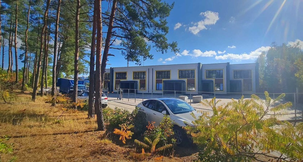 Перед будинком облаштовано велике закрите паркування для автомобілів, а з вікон відкривається краєвид на сосновий ліс — ідеальне поєднання затишку, природи та зручності.