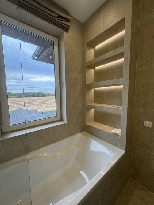 Продаж БЕЗ комісії. Сучасний будинок з новим ремонтом в мальовничому місці, поряд із чудовим озером. Розташований біля с.Мощун у закритому містечку "Джерело". Хвойний ліс, велике озеро, охорона 24/7, гарні сусіди - ідеальні умови для спокійного життя. На іншому березі озера - комплекс відпочинку Пуща Лісова. До Києва 20 хвилин: по варшавці через Горенку або через Пущу-Водицю (12 км від КП Пуща-Водиця). Ціна 270000 дол. Загальна 250 кв.м.+ Тераса 20 м. На 1 поверсі: передпокій, санвузол, гостьова спальня або кабінет , кухня - вітальня з чудовою фінською піччю - каміном та виходом на терасу. На 2 поверсі: 3 спальних кімнати (одна - з власною ванною та гардеробом), санвузол. Цокольний: зона відпочинку, великий хамам, санвузол, технічні приміщення з окремим виходом. Будинок дуже комфортний і головне - ще ніхто не жив! Стіни - керамоблок / клінкерна цегла, утепленний мінватою 100 мм. Дах - бітумна черепиця ONDULINE, утеплення 300 мм. Вікна REHAU (3-камерні). Новий стильний ремонт - якісні та довговічні матеріали. Підлога - плитка Італія, парккет Норвегія. Стіни та стеля - фінська фарба, пробка Португалія, шпалери (Ламборгіні, Трусарді) Італія. Світло - люстри Італія. Меблі - дуб і груша. Сантехніка - Італія. Опалення - сучасний тепловий насос, збереже ваші гроші та екологію навкруги! Тепла підлога скрізь, в спальнях радіатори. Гаряча вода - тепловий насос/бойлери. Електрики 32 кВт. Зроблено виведення кабелів у двір для генератора та зарядки електроавтомобіля, а також на даху - для сонячних панелей. Власний септик (2 х 3 м3), центральне водопостачання + 2 власні свердловини з фільтрами (130 м, Сеноманського водоносний горизонт). Ділянка рівна, є зона барбекю, є власний льох(погреб). Сховище для палива. Автоматичні ворота. Крита парковка на 2 авто, є місце для авто гостей. будинок, стіни: керамічна цегла; житлових повірхів: 2; ділянка: 7 сот.