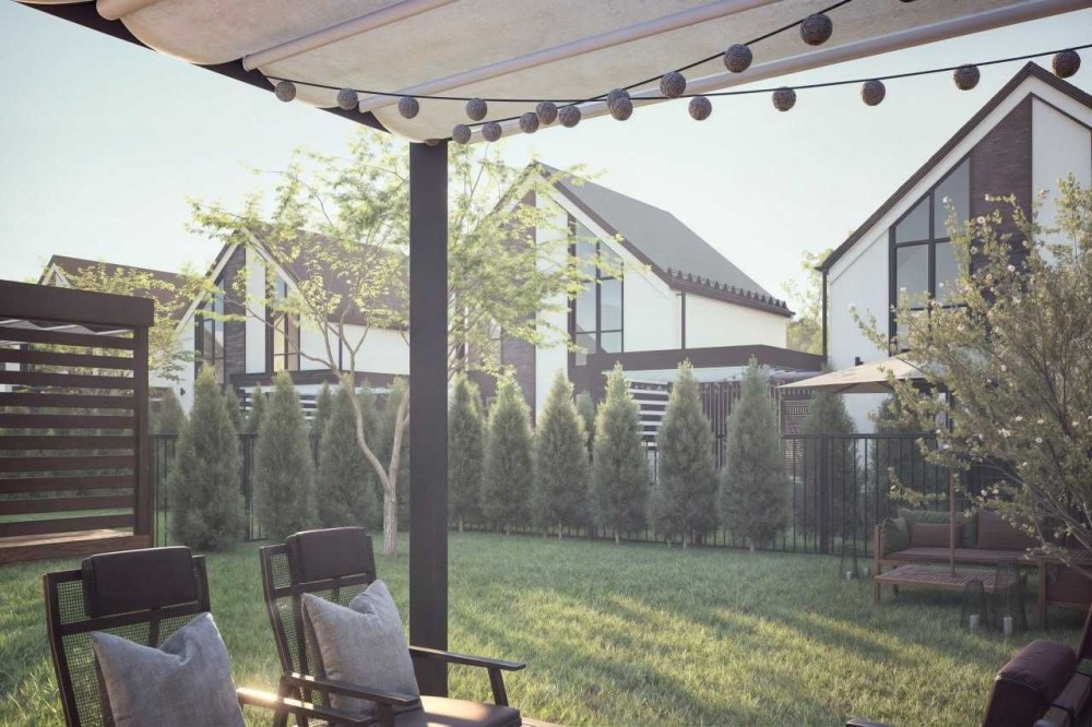 Кожен будинок має власну парковку під авто з навісом.