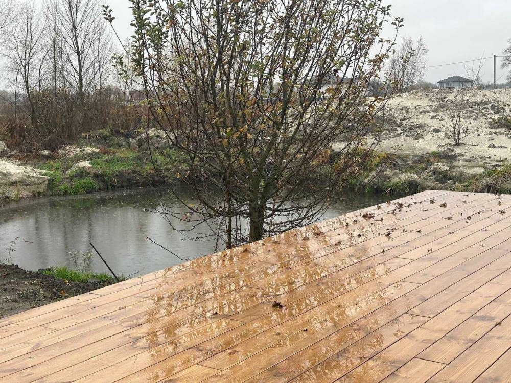 Затишна територія комплексу на березі мальовничого ставка.