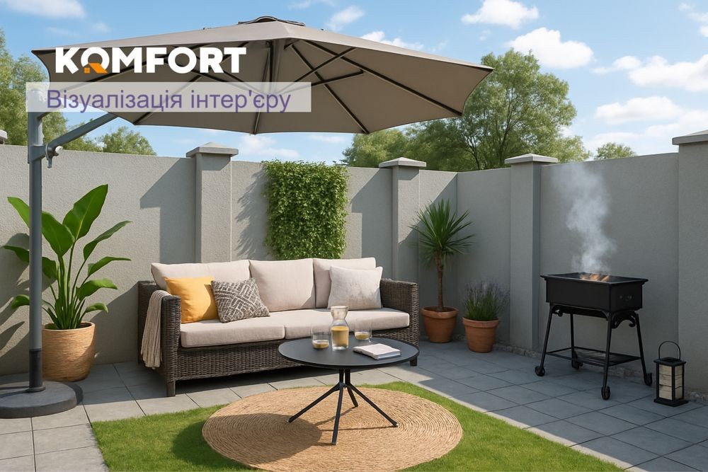 Парковка (покриття - тротуарна плитка) під 4 авто перед будинком. Задній двір 7м х 5,5м для барбекю, басейну, тапчанів або дитячого майданчика.