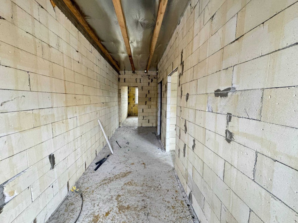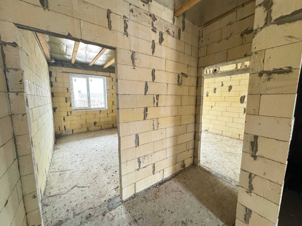 Продається новий індивідуальний житловий будинок котеджного типу загальною площею 131 м.кв. під чистове оздоблення, розташований в селі Крячки Фастівського (колишнього Васильківського) району Київської області на території нового житлового масиву із сучасною котеджною забудовою, що перебуває на відстані 20 км від станції метро «Теремки» міста Києва та за 1,5 км від міста Васильків. Житловий будинок складається з першого та мансардного поверхів. Загальна площа будинку із допоміжними спорудами становить 173,1 м.кв., з яких: а) площа будинку ‒ 131,0 м.кв., у тому числі житлова (основна) ‒ 94,1 м.кв. та допоміжна (підсобна) ‒ 39,6 м.кв.; б) площа тераси – 23,1 м.кв.; в) площа трьох балконів – 13,4 м.кв. (5,8 + 4,9 +2,7 м.кв.); площа ґанку – 5,6 м.кв. Котедж вміщує в собі 5 (п’ять) доволі просторих кімнат, 2 (два) санвузли (на кожному із поверхів), 1 (одне) технічне приміщення (котельня або бойлерна), 2 (два) коридори, 1 (одну) вітальню із виділеною еркером обідньою зоною, що поєднана з кухнею. Із вітальні є окремий вихід на велику терасу, з якої відкривається затишний вигляд на внутрішній двір. Кожна з трьох мансардних кімнат має окремий вихід на балкон. Над усією площею мансардного поверху розташоване містке горищне приміщення. Будинок приєднаний до електропостачання потужністю ‒ 12кВт (3 окремих фази). Має свердловину глибиною 55 метрів із фактичним дебітом (спроможною потужністю) ‒ 2,5 м.куб./год. та каналізацію септик з переливом на 11 м.куб. На усій площі першого (крім житлової кімнати) та у санвузлі мансардного поверхів встановлена система водяної теплої підлоги фірми «Rehau». По котеджу розведені: опалення, водопостачання і каналізація. В будинку передбачена можливість встановлення камінної топки, а також приєднання котеджу до газорозподільної мережі та всесвітньої мережі Інтернет. Індивідуальний житловий будинок розташований на земельній ділянці площею 0,075га з цільовим призначенням – (02.01) для будівництва і обслуговування житлового будинку, господарських будівель і споруд (присадибна ділянка). Під житловою забудовою перебуває 0,0115га земельної ділянки, решта 0,0635га займає просторий двір. Кадастровий номер земельної ділянки: 3221487004:03:006:0328. Земельна ділянка огороджена парканом із монолітного фундаменту, що опорядковане металевим штахетом із обох боків та металевим профілем з тильної та фасадної сторін. Заїзд у двір має відкатні ворота. На території двору (перед будинком) облаштоване загальне паркомісце на 2 (два) автомобіля, решта двору засіяне газонною травою. Котедж побудований з якісних матеріалів за проектом європейського архітектурного бюро. Так, фундамент, перекриття та міжповерхові сходи ‒ монолітні. Стіни будинку збудовані з газоблоку AEROC D500 (товщиною 300мм), що утеплений пінопластом 100мм. Внутрішні міжкімнатні перегородки виконані із цегли. Дах ‒ металочерепиця фірми «Ruukki», що утеплений мінераловатними плитами загальною товщиною 200мм. Вікна вироблені з профілю фірми «Rehau» серії EVRO 70. Фасад котеджу покритий акриловою штукатуркою. Будинок за усім периметром має вимощення шириною 0,9 метри, що облаштоване фігурними елементами мощення (ФЕМ). Зручне ергономічне планування будинку, а також наявність високих стель обох поверхів дає можливість відчувати себе вільно і затишно. Завдяки правильному утепленню зовнішніх стін будинку, у ньому прохолодно влітку та тепло вз