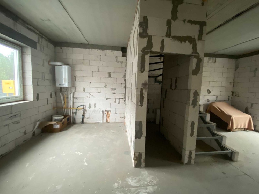 Наповнення : стяжка, тепла підлога на першому поверсі і санвузол на другому, розведене опалення по кімнатам на другому поверсі, встановлені інсталяції. Встановлено двохконтурний газовий котел.