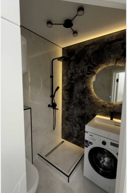 Санвузол з душем, є пральна машина.