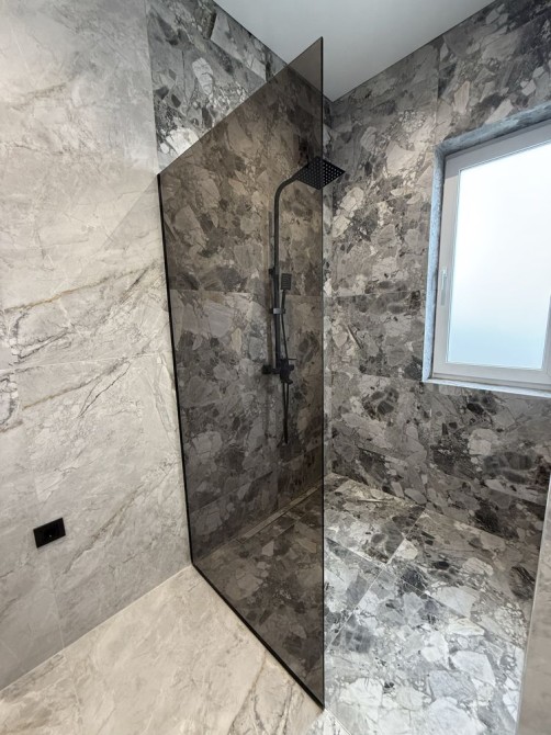 Виконано сучасний дизайнерський ремонт з використанням якісних матеріалів: ламінат, керамограніт, натяжні стелі, LED-освітлення, стильні меблі та сантехніка.