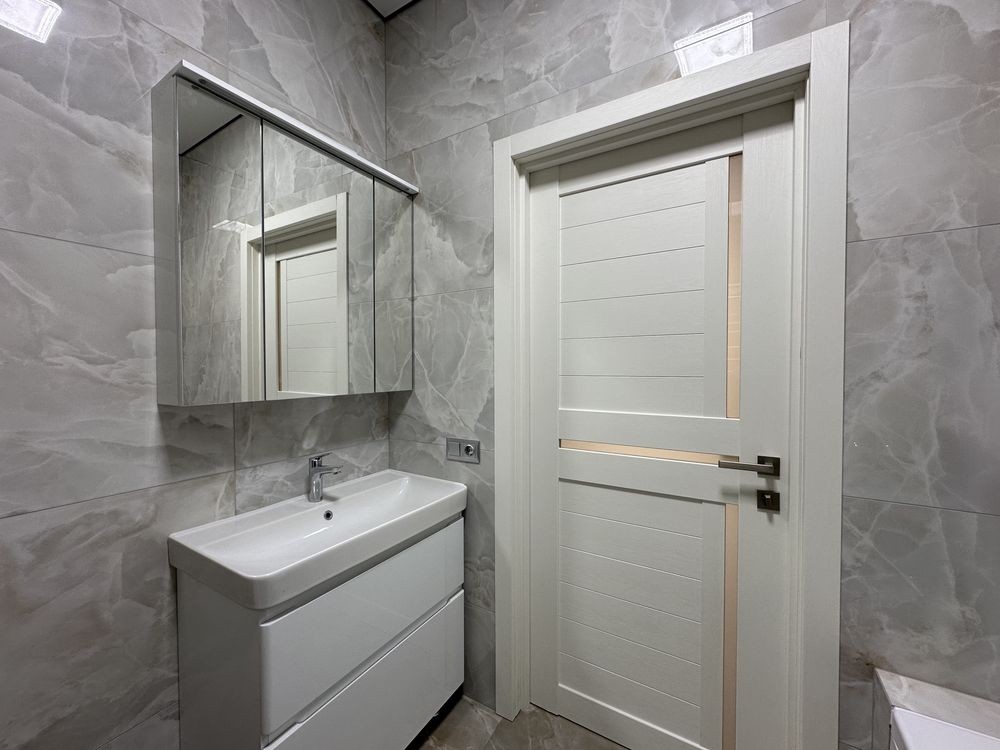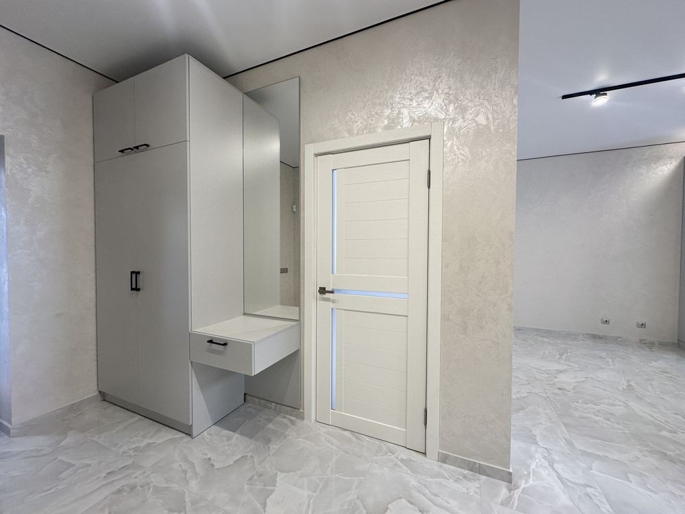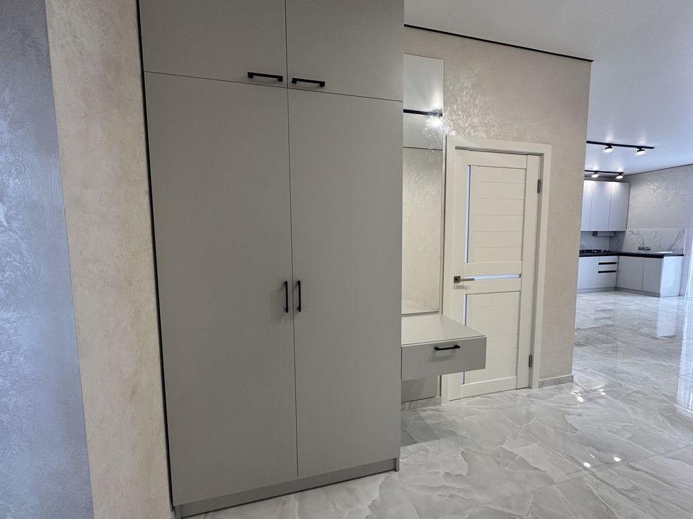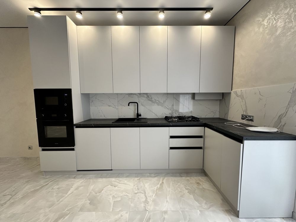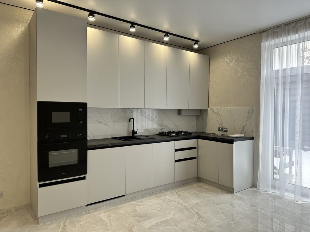 Зроблено ремонт у світлих тонах, на кухні встановлена вбудована кухня з технікою.