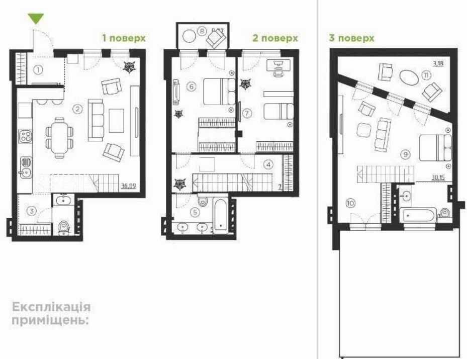 • Трикімнатна