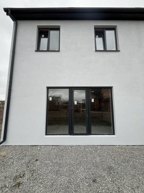 Довжик, центр, Таунхаус, Дуплекс, новобудова з двох секцій, загальна площа кожної 107кв.м, 2 поверхи, односкатний дах - металочерепиця, газоблок/пенопласт/ штукатурка, вільне планування, світло 3 фази, газ поруч, м/п/вікна, без внутрішніх робіт, 3 сотки для кожного будинку, рівна, прямокутна ділянка, гарний заїзд, асфальтований. Снаружи уже зроблени фасады.