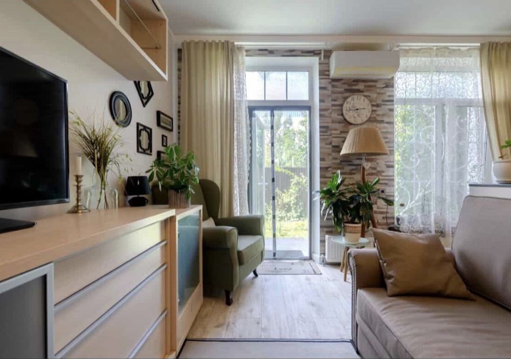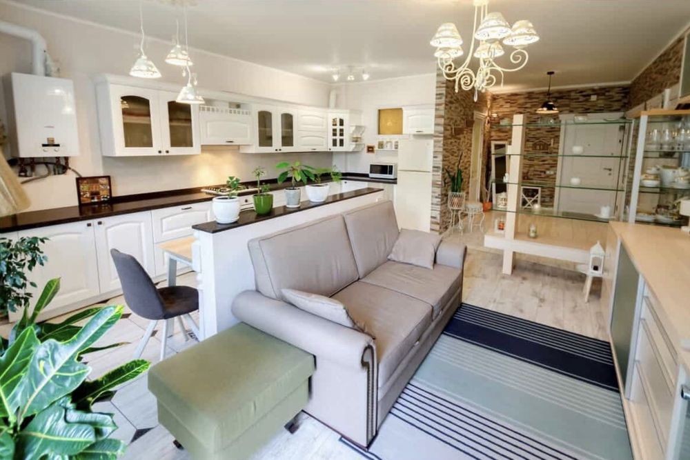 Квартира повністю укомплектована меблями та необхідною побутовою технікою (посудомийної машини нема) кондиціонер та газовий котел, що забезпечує комфортне проживання у будь-яку пору року, тепла підлога в ванній кімнаті.